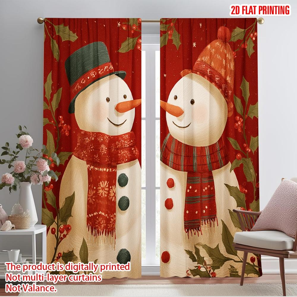 2pcs,2D Plane Printing Curtain Fabric Christmas Snowman1 Versatile Polyester (without Rod) Home Decor Use for Bedroom, Living
