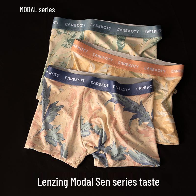 CAREKOTY Mori Style Men's Modal Antibacterial Mid-Rise Boxer Briefs - Comfortable Autumn/Winter Wear