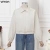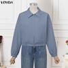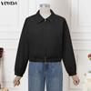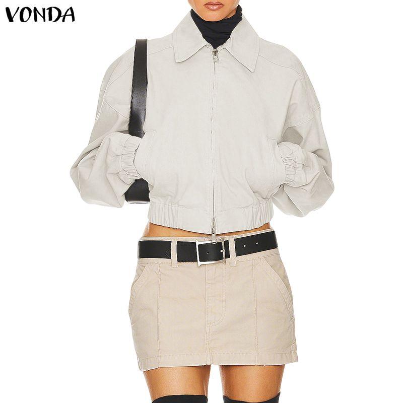 VONDA Spring Women Lapel Neck Long Sleeve Zip-up Thin Casual Cropped Jackets Coats