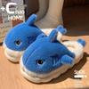 Men's and Women's Shark Cartoon Cotton Slippers: Non-slip, Plush, Thick-soled, Full Heel, Indoor/Outdoor Winter Warm Footwear