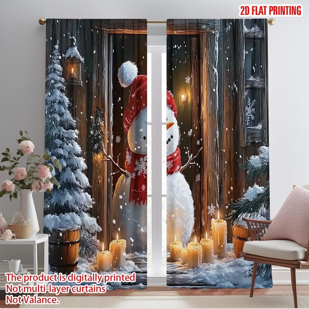 2pcs,2D Plane Printing Curtains Digital Printed Snowman Christmas Winter Door 100% Polyester (without Rod) All Seasons Use for