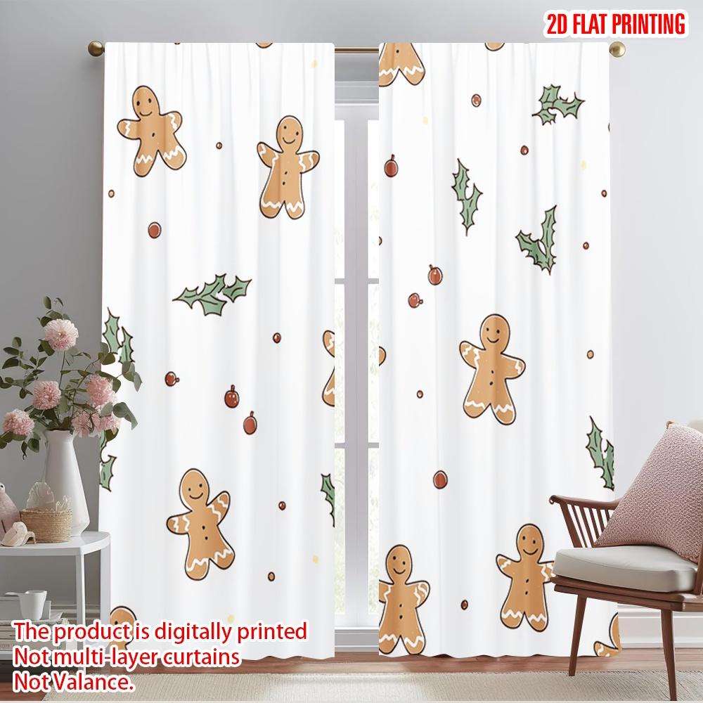 2pcs,2D Plane Printing Contemporary Curtains Gingerbread Christmas Holly Cute (3) Polyester Easy Install (without Rod)