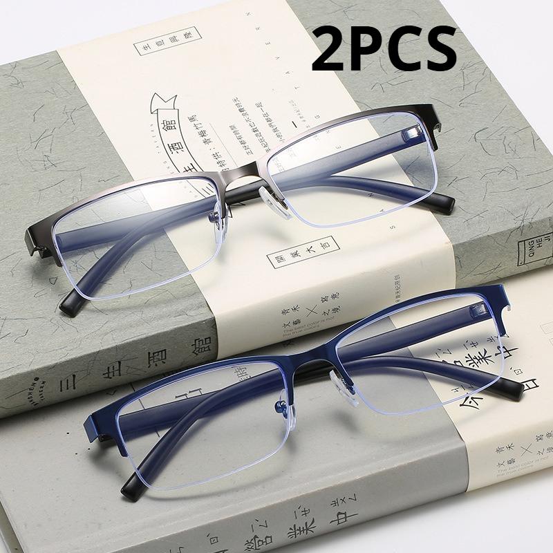2PCS Metal Half Frame Myopia Glasses Square Myopia Glasses Men Women Anti Blue Light Myopia Eyewear Glasses Diopter 1.0 To 4.0