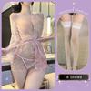 Sexy Lingerie Collar Bathrobe One-word See-through Blouse Sexy Pajamas Bronzing Print Cardigan and Clothing