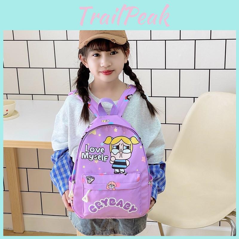 This children's backpack features a lightweight nylon construction,Designed with a breathable, wear-resistant fabric and an ergonomic curved shoulder strap, it offers comfort and durability. The backpack showcases playful cartoon and alphabet print patterns with a crying doll motif, ideal for kindergarten daily use. Easy to clean, wipe with a damp cloth for maintenance.