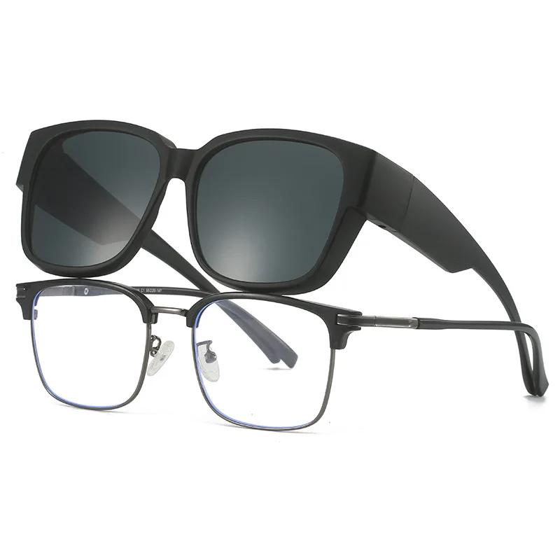 Sunglasses Unisex HD Lens Portable One Mirror Dual-use Anti-UV Sun Glasses Outdoor Driving Men Vintage Myopia TR90 Glasses Set