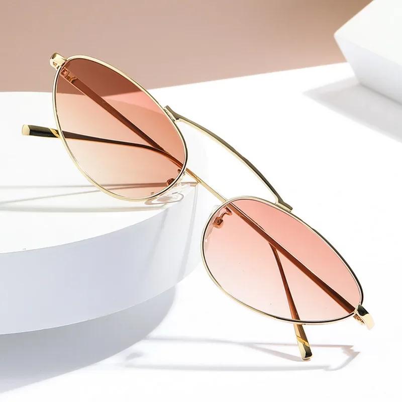 Fashion Luxury Cat Eye Sunglasses for Women Unique Small Oval Metal Frame Brand Design Eyewear UV400 Sunglasses Lentes De Sol