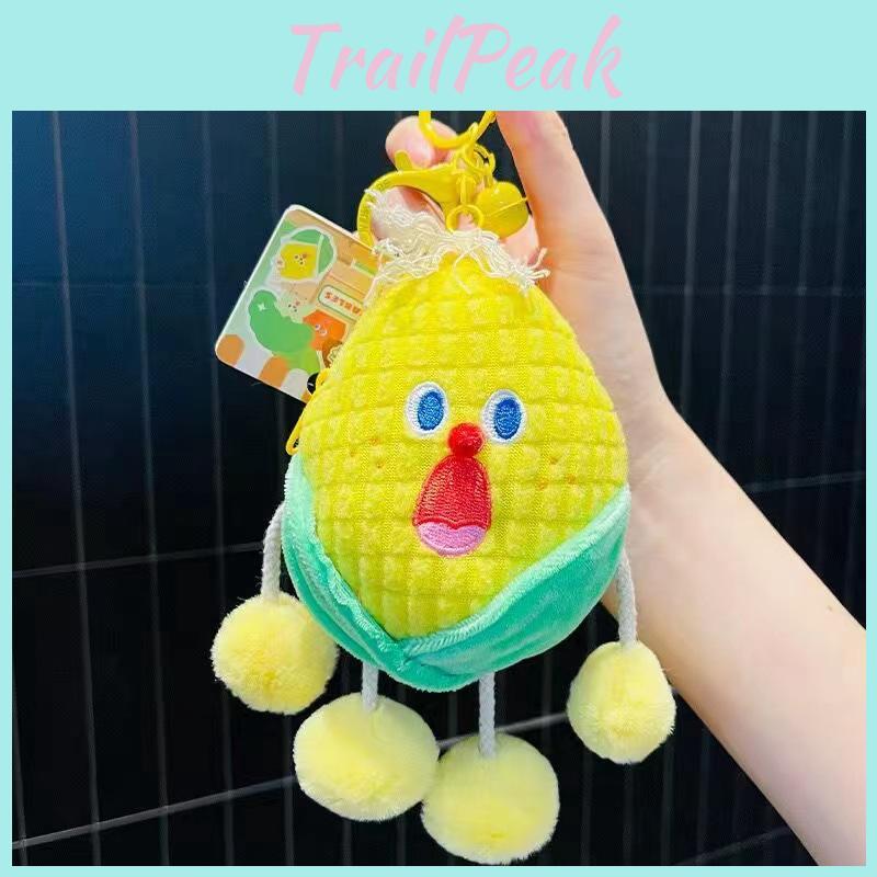 This plush vegetable character keychain features a soft, durable fabric construction designed to withstand daily handling. Measuring 15.5 by 11 centimeters, it includes a retractable headphone holder and coin pouch, making organization simple. Its cartoon-inspired design adds playful appeal for children and teens.