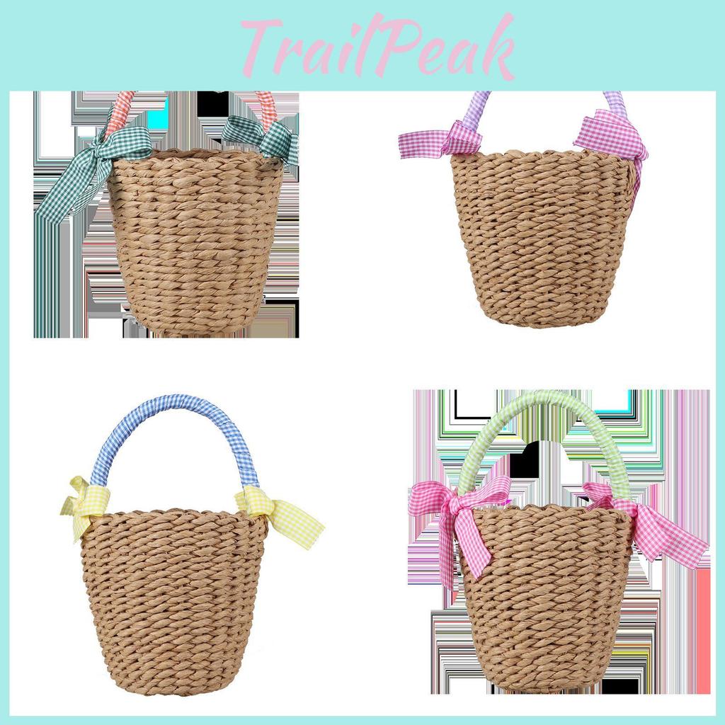 Weaving Mini Bucket Bag Kids Spring Summer Season Basket Vacation Beach Handbag