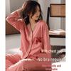 Discover comfort and style with this Women's Plus Size Striped Pajama Set, designed with a unique Korean style cardigan. This versatile set, made from soft cotton material, features long sleeves and pants, making it ideal for both indoor and outdoor wear during spring and autumn. The pajama top includes chest pads for added comfort and support, while the chic striped pattern adds a touch of elegance to your loungewear collection. Perfect for curling up at home or stepping out, this pajama set combines practicality with a fashionable edge.