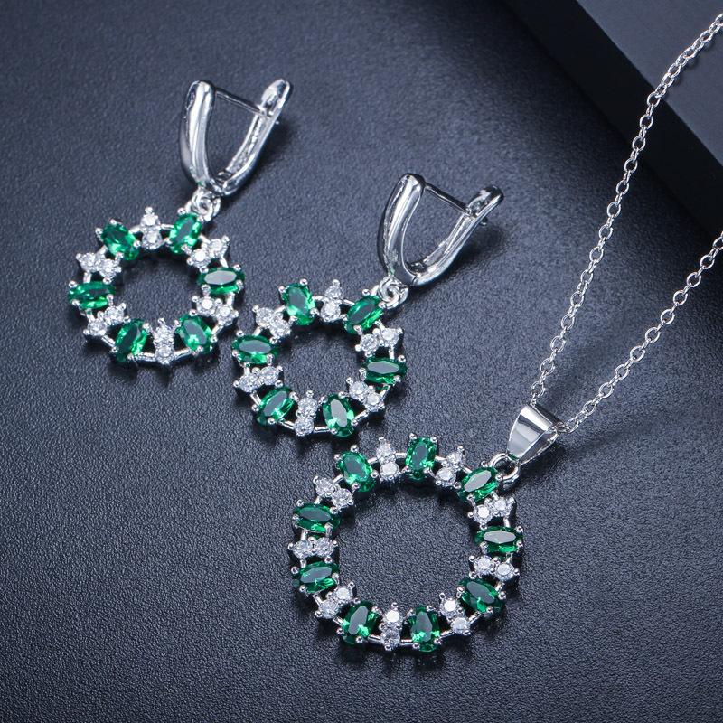 Ki0064 Popular Women'S Jewelry Set, Earrings, Necklace, Aaa Zircon Hollow Loop Cover Chain