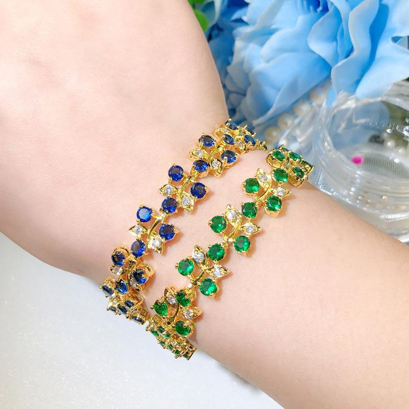 S0169 Exquisite Flash Diamond Aaa Zircon Plated Real Gold Bracelet Jewelry