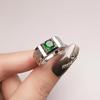 Domineering Men'S Matte Emerald Tourmaline Ring, Platinum-Plated Imitation Opening Adjustable Blue Diamond Zircon Men'S Ring.