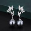 Jewelry Copper Bottom Gold-Plated Inlaid Gray Bead Butterfly Handmade Diamond Set 14Mm12Mm