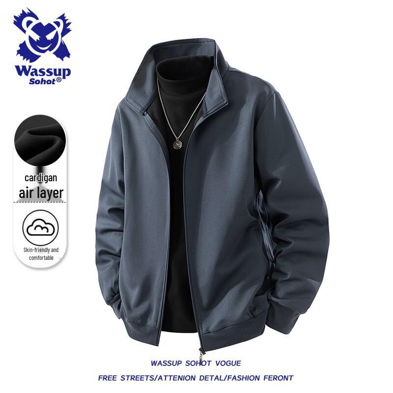 Wassup Sohot Men's Stand Collar Loose Fit Zip-Up Jacket