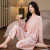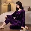 Da Vinci Code Bamboo-Inspired Gold Velvet Women’s Long-Sleeve Pants Set: Cozy Autumn/Winter Home Wear