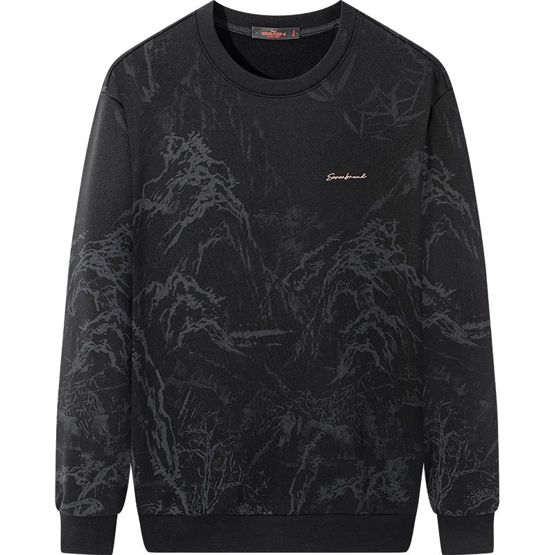 SEVEN Men's National Style Mountain Print Brushed Sweatshirt