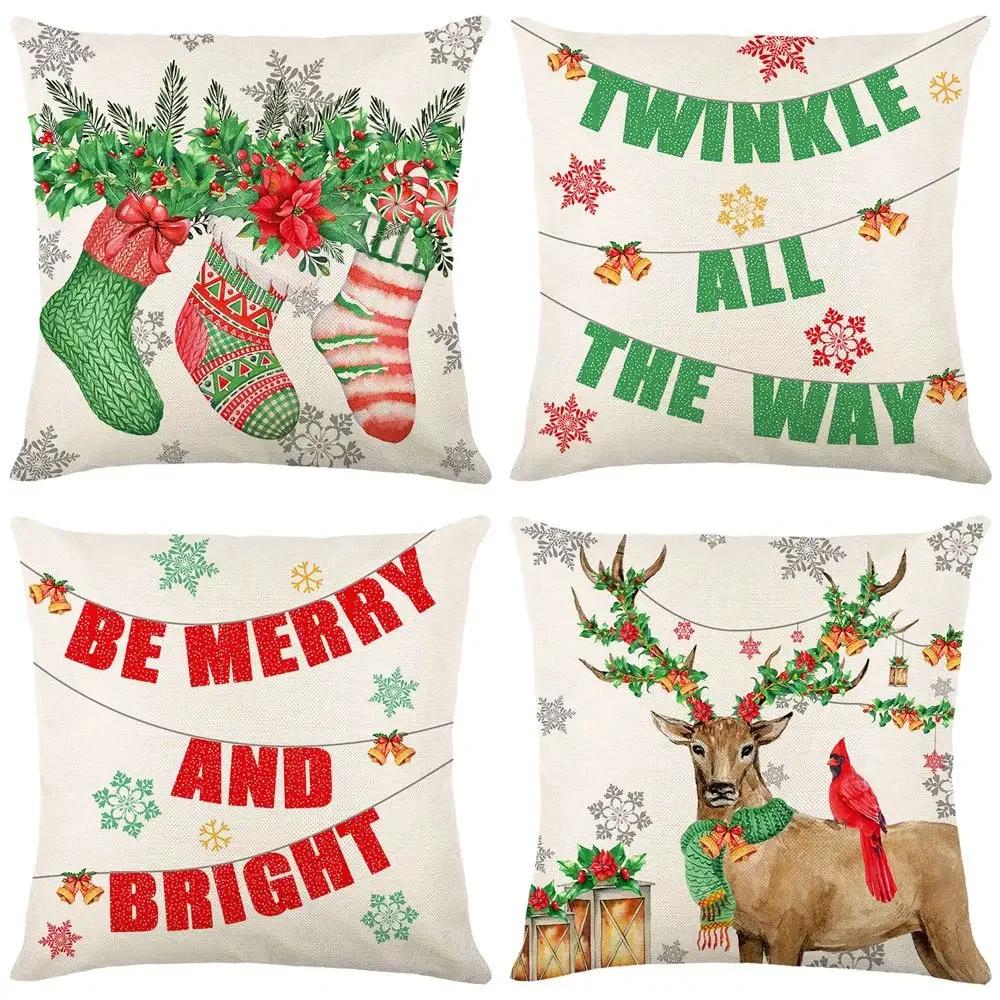 45cm Merry Christmas Cushion Cover Pillowcase 2025 Christmas Decorations for Home Ornament New Year Christmas Decor 2025 Noel