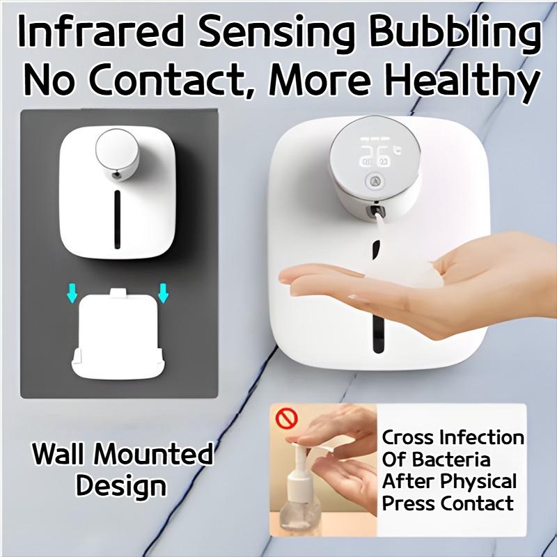 Wall-mounted Automatic Soap Dispenser with Infrared Sensor LED Digital Display Touchless Foam USB Rechargeable Easy Hygiene