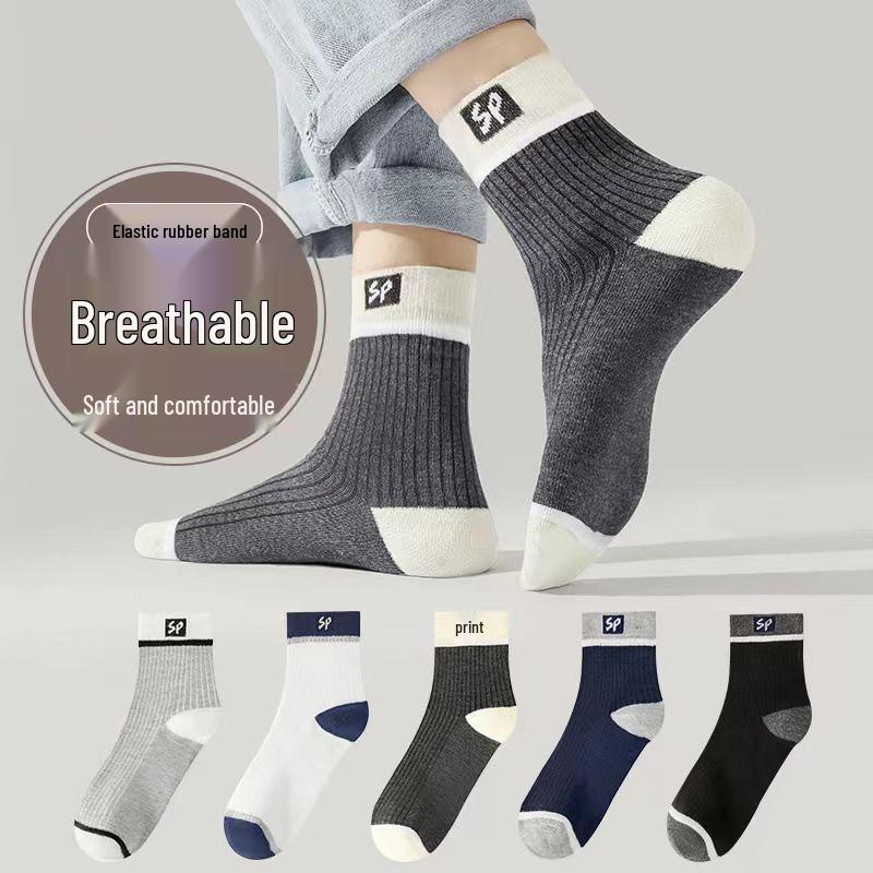 Men's Mid-Calf Sweat-Absorbing Odor-Resistant Cotton Socks: Autumn/Winter Sports High-Top Style
