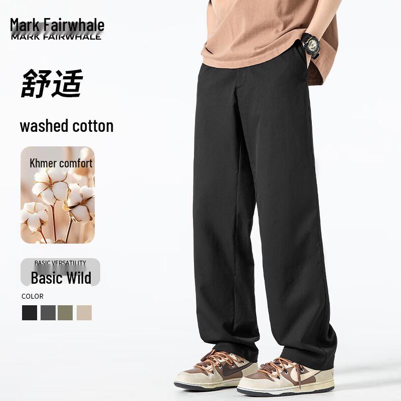 Mark Fairwhale Men's Washed Cotton Straight-Leg Casual Pants