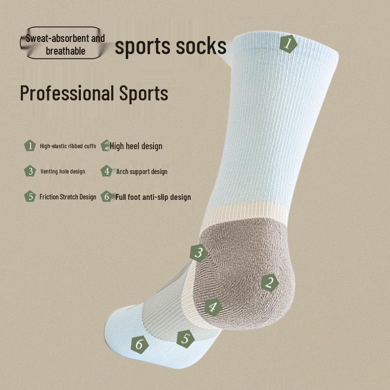 Men's Mid-Calf Professional Basketball Socks - Sweat-Absorbent, Non-Slip, Ideal for Running and Fitness