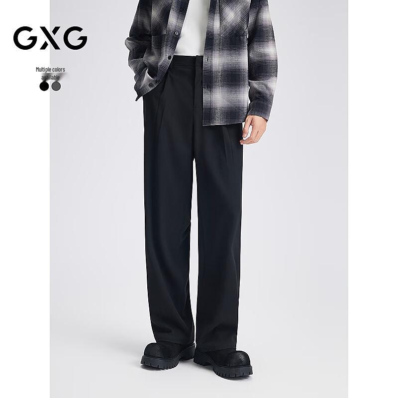 GXG Men's Wide-Leg Brushed Single-Pleat Casual Trousers