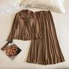 Women's Cotton Long Sleeve Two-Piece Pajamas with Chest Pads, Minimalist Style, Thickened for Spring/Winter.