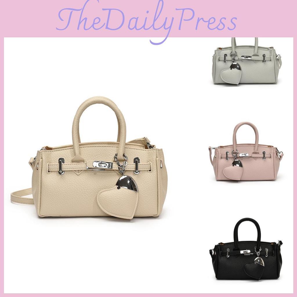 Pendant Heart Symbol Gold Handheld Purse Sewed Detailing Shoulder Office Strap