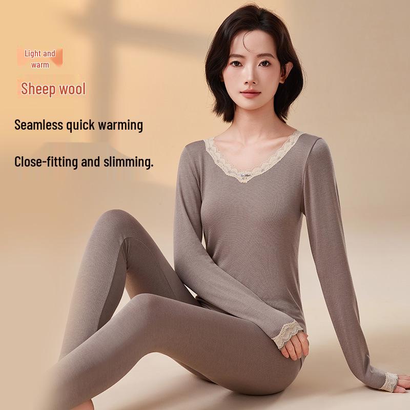 2025 Women's Seamless V-neck Body Shaping Thermal Underwear Set for Autumn/Winter