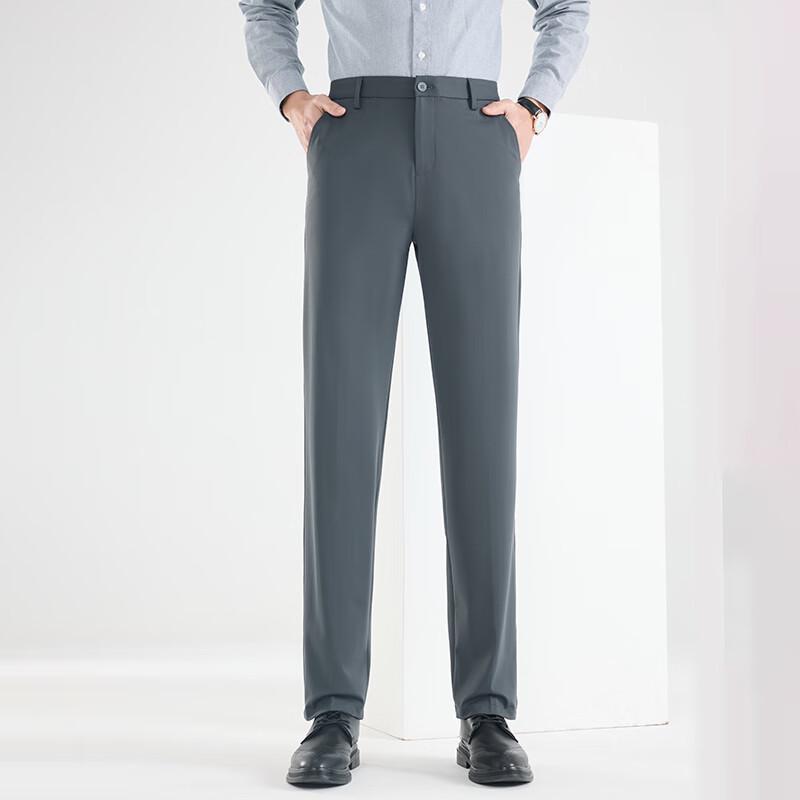 Fengxun Men's Silk Blend Commuter Straight-Leg Pants