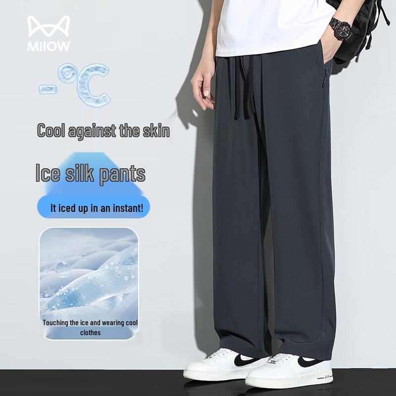 MIIOW Men's Ice Silk Straight-Leg Casual Pants