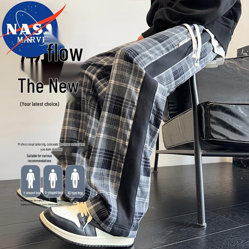 NASA MARVEL Men's Spring/Autumn Plaid Casual Straight-Leg Trousers