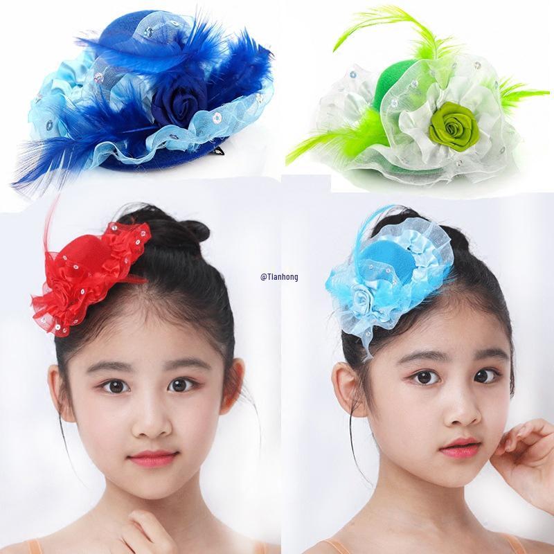 Girls' Performance Feather Flower Headpiece - Small Top Hat Hair Clip Accessory for Dresses