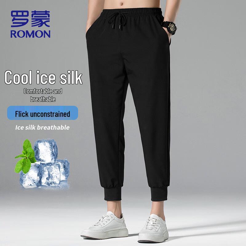ROMON Men's Summer Lightweight Ice Silk Cropped Jogger Pants