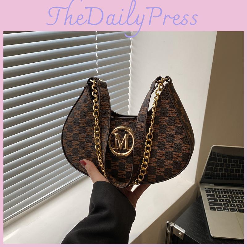 Retro Bag Armpit With Letter Printing Design And Chain Shoulder Strap For Daily