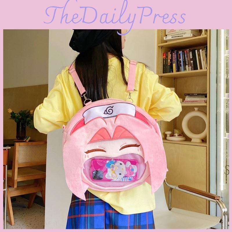 Uzumaki Sakura Haruno Naruto Cartoon Pattern Plush Backpack Cute Bag Student