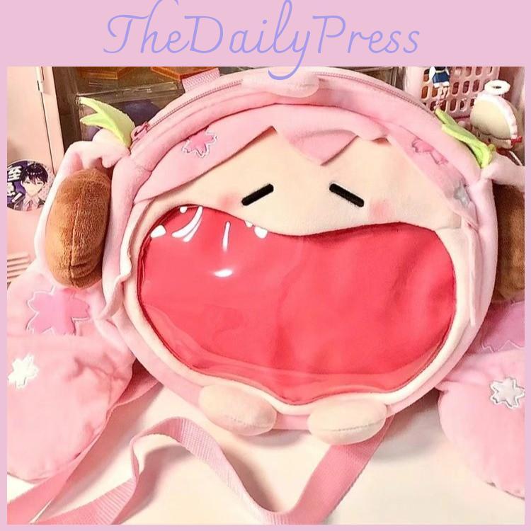 Hatsune Itabag Pink Plush Tote Backpack Floral Design Girls Outings