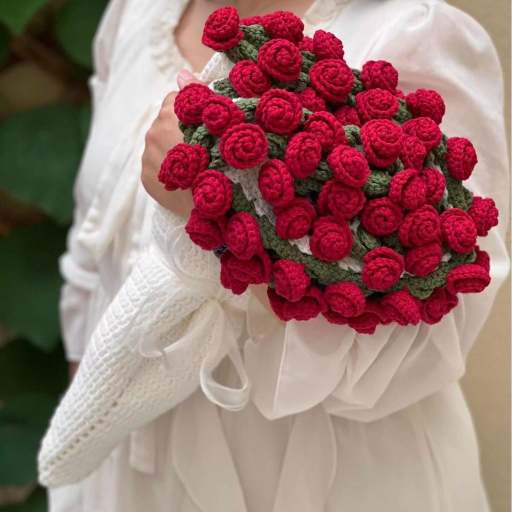 Hand-Knitted Rose Bouquet Crochet Blanket Shawl