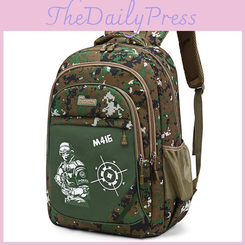 The Camouflage Backpack is designed to meet the needs of elementary and middle school students,offering a spacious and ergonomic solution for daily use.this backpack ensures long lasting performance. Capacity, accommodating books,stationery, and even a 16inch laptop,making it ideal for school or casual outings.The breathable design and curved shoulder straps provide enhanced comfort,reducing strain during extended wear.