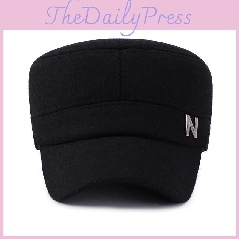 Middle N Letters Aged Elderly Hat Autumn With Thick Wool Windproof Warm Top Flat