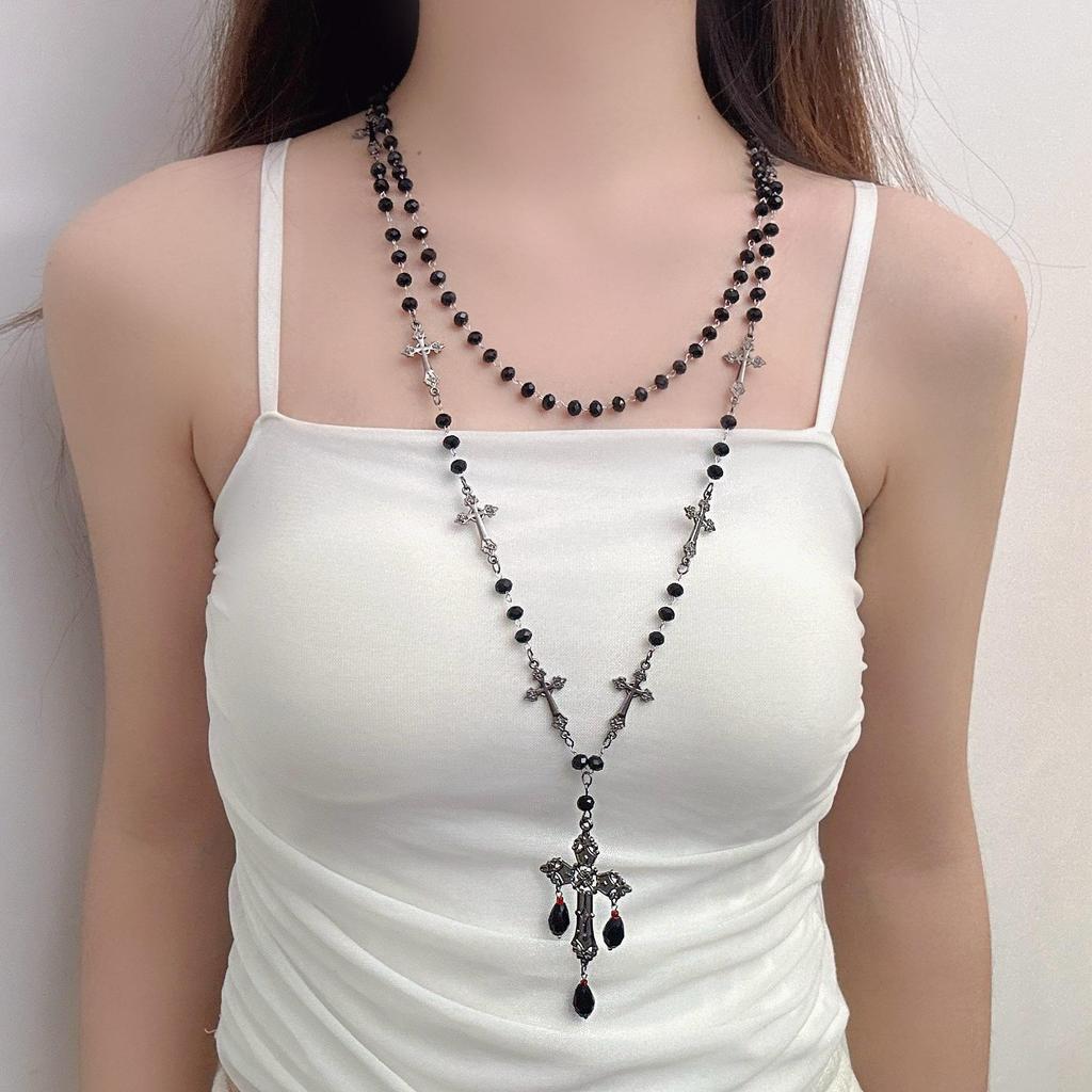 Layered Gothic Cross Necklace & Sweater Chain for Women