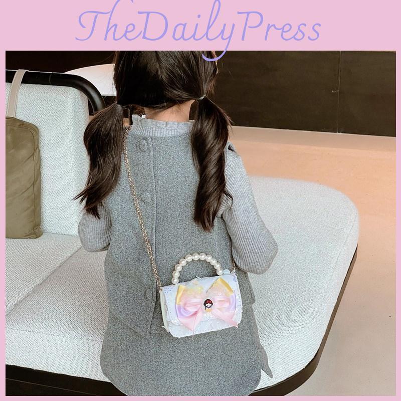 Elegant Little Girls Bow Shoulder Bag Fashionable Chain Strap Versatile Purse Kids