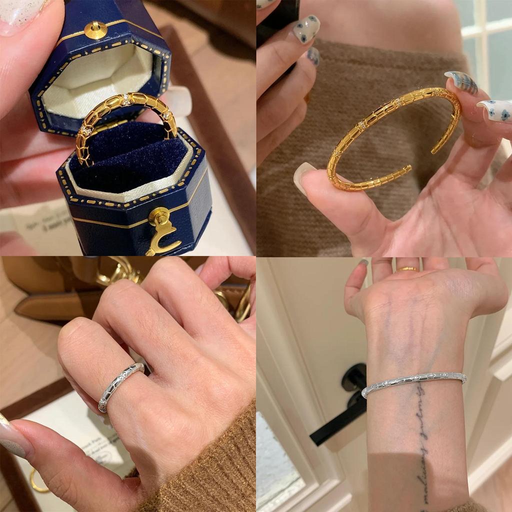 High-End Zodiac Snake Diamond Bangle & Ring Set for Women - Minimalist New Year of the Snake Style