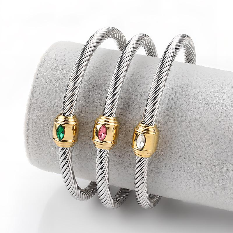 18K Gold Non-Fading Zircon Inlaid Titanium Steel Twist Open Bracelet