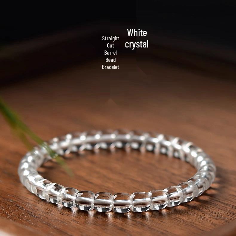 Minimalist White Crystal Women's Bracelet with Straight Cut Barrel Beads