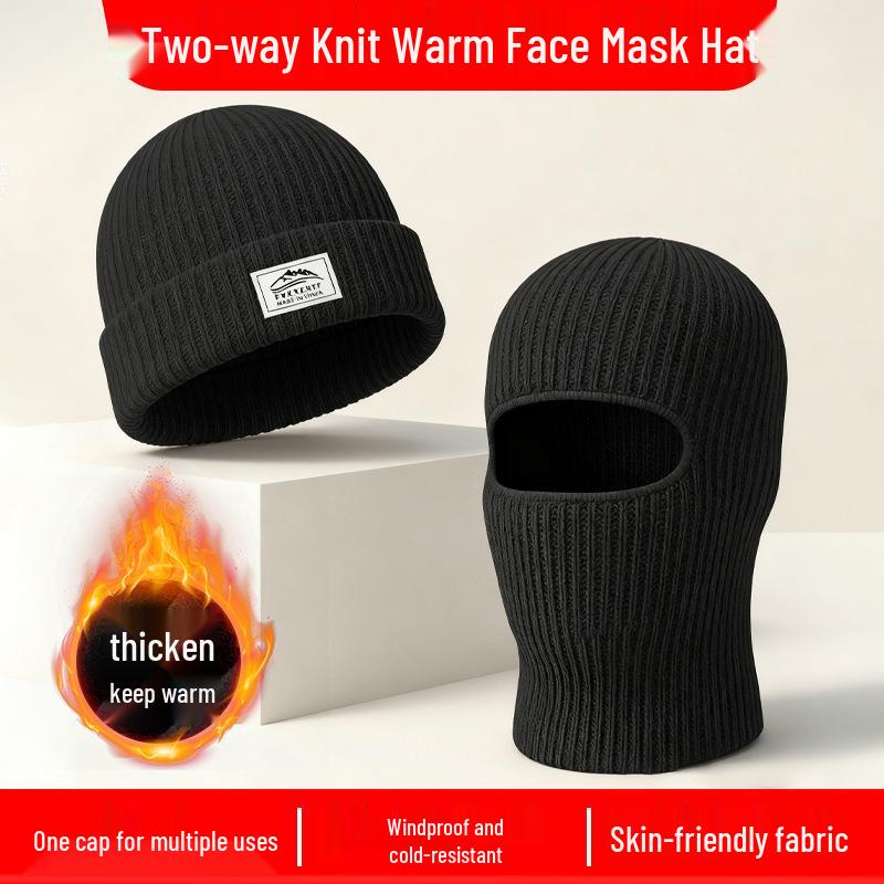 European and American Style Thick Woolen Beanie with Ear Flaps - 2-in-1 Knitted Hat & Adjustable Face Protection for Warm Cycling