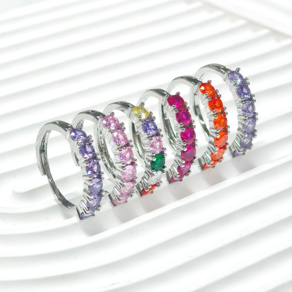 Gusen Colorful Zircon Inlaid Fashion Ring - Simple, Exquisite, Hot-Selling Style