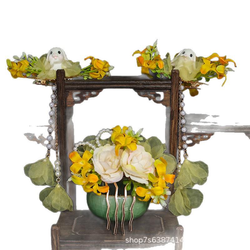 Children's Mid-Autumn Osmanthus Rabbit Hanfu Hair Comb & Tassel Accessories
