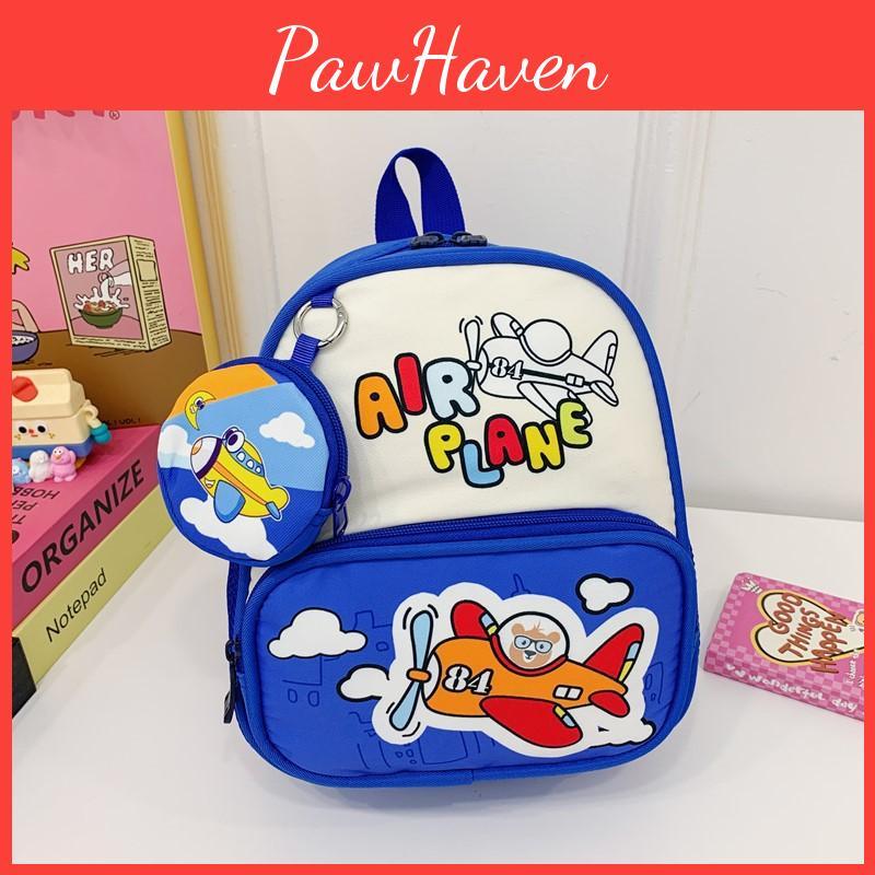Childrens Backpack With Cartoon Cat And Airplane Print Design For Use Daily